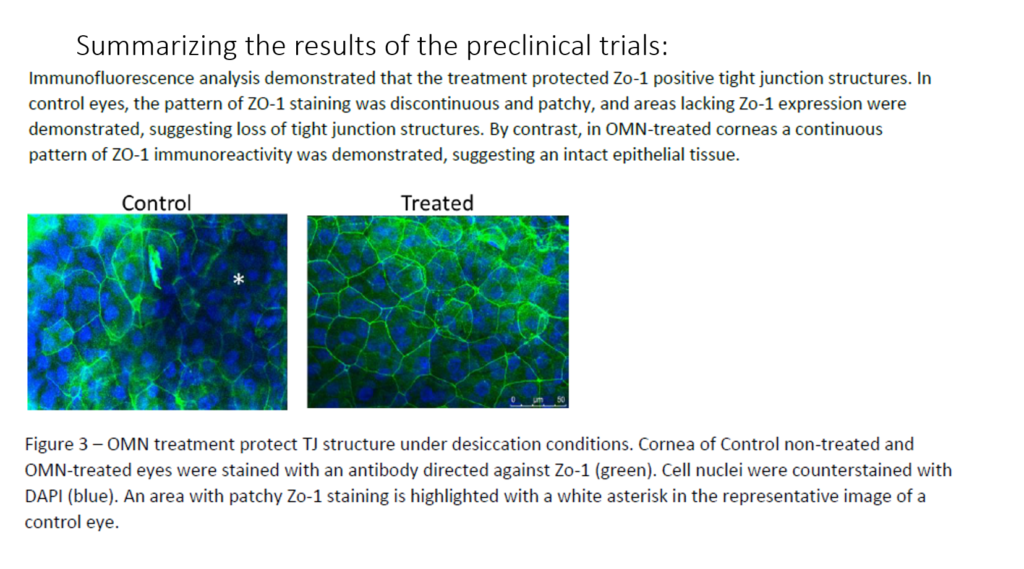 Epitech completed pre-clinical trials in 2017 and published the results in 2020 which demonstrated that RMS treatment decreases epithelial corneal erosions in a rabbit model of exposure keratopathy, with no indication of pathological changes.
