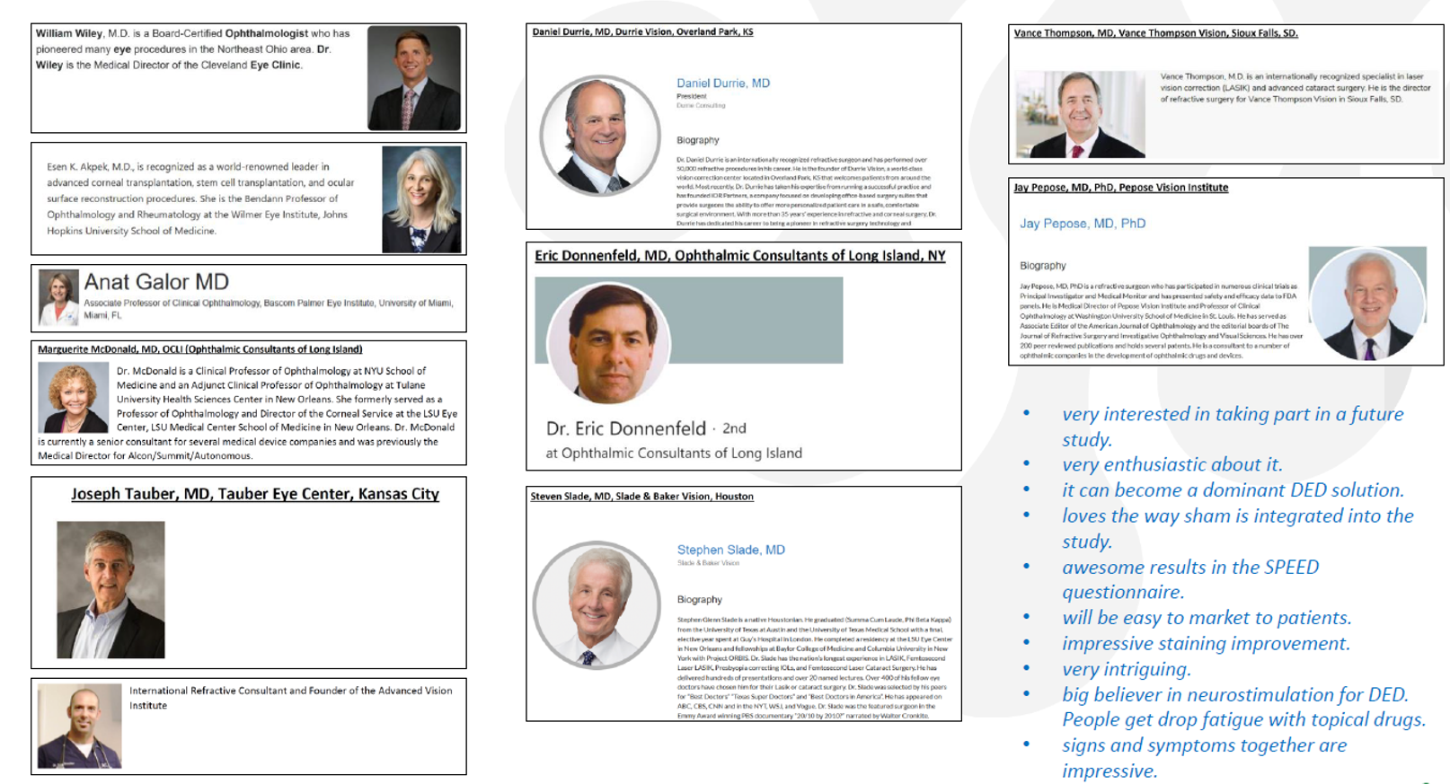 75-year-old male: Tried many things beforehand and was very skeptical about the device. Called the clinical team two days following treatment and said that the treatment had completely changed his life: he was on “Cloud 9,” and he could finally sleep without the AC bothering him. The effect was felt within a few days, and he reduced the use of eyedrops.